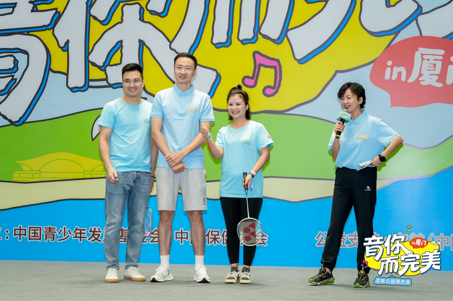 伦敦及里约奥运会羽毛球冠军张楠作为健康大使亲临现场,分享科学运动心得,并与参与者展开趣味互动。在他的带领下,全场进行了热身准备。