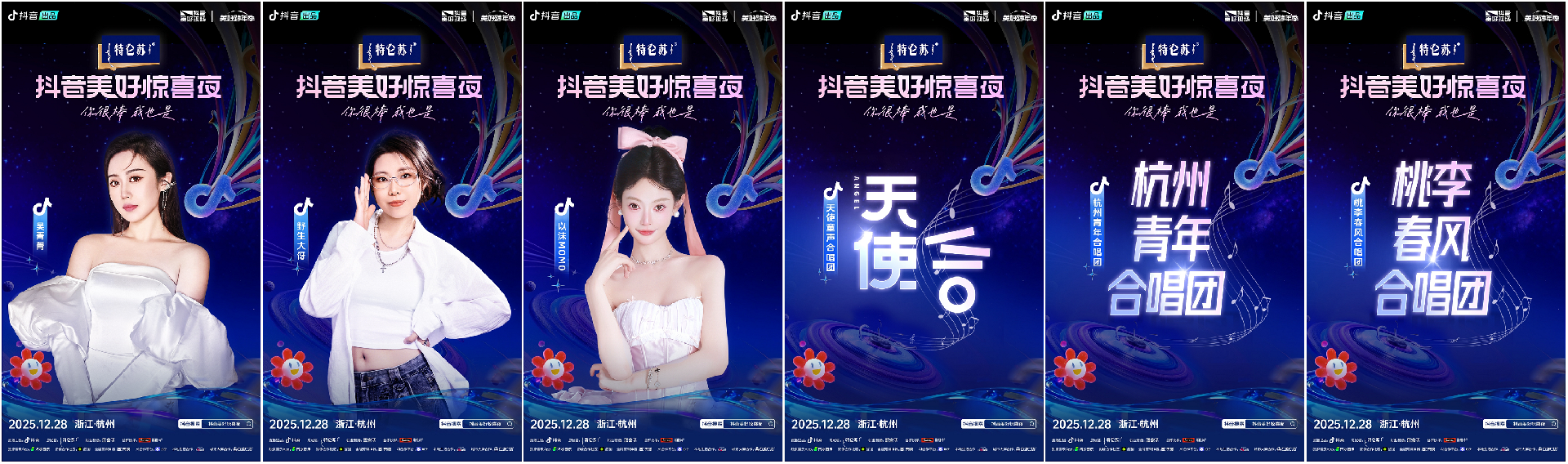 12月28日晚19:00,2025抖音美好惊喜夜将与20余位惊喜嘉宾、10余位抖音优质创作者及热门萌动IP,共同打造一场跨越屏幕的狂欢,让每一个平凡的瞬间都被掌声与喝彩包围!