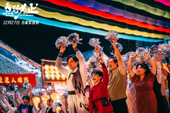 电影《点到为止》主要讲述金毛(尹正 饰)躺赢走红被资本一眼看中,决定返乡带领全村人一起做足“表面功夫”狂赚2个亿的故事。今日发布的终极预告以金毛与儿子的爆笑互怼拉开序幕,金毛自信满满幻想着如何光宗耀祖,没想到惨遭儿子吐槽“你自己信吗”。为了实现大计划,他决定招兵买马,组建一支专业“忽悠团”把假的演成“真的”。组团第一步:靠画饼,欠条变“金条”,先吸引村民买股自己;第二步:靠拼爹?可惜没有好爸爸助力,只能开启第三步:靠祖宗显灵!为了中标,把祖宗原名都换成了“金中标”,奈何投资人还是不买账。最后必须:靠演技!全村化身戏精,爆笑展现十八般“反差”武艺,上演了一场热闹非凡的精彩好戏,使得欢乐氛围沉浸式感染到观众,每一幕都能戳中全家人的笑点。