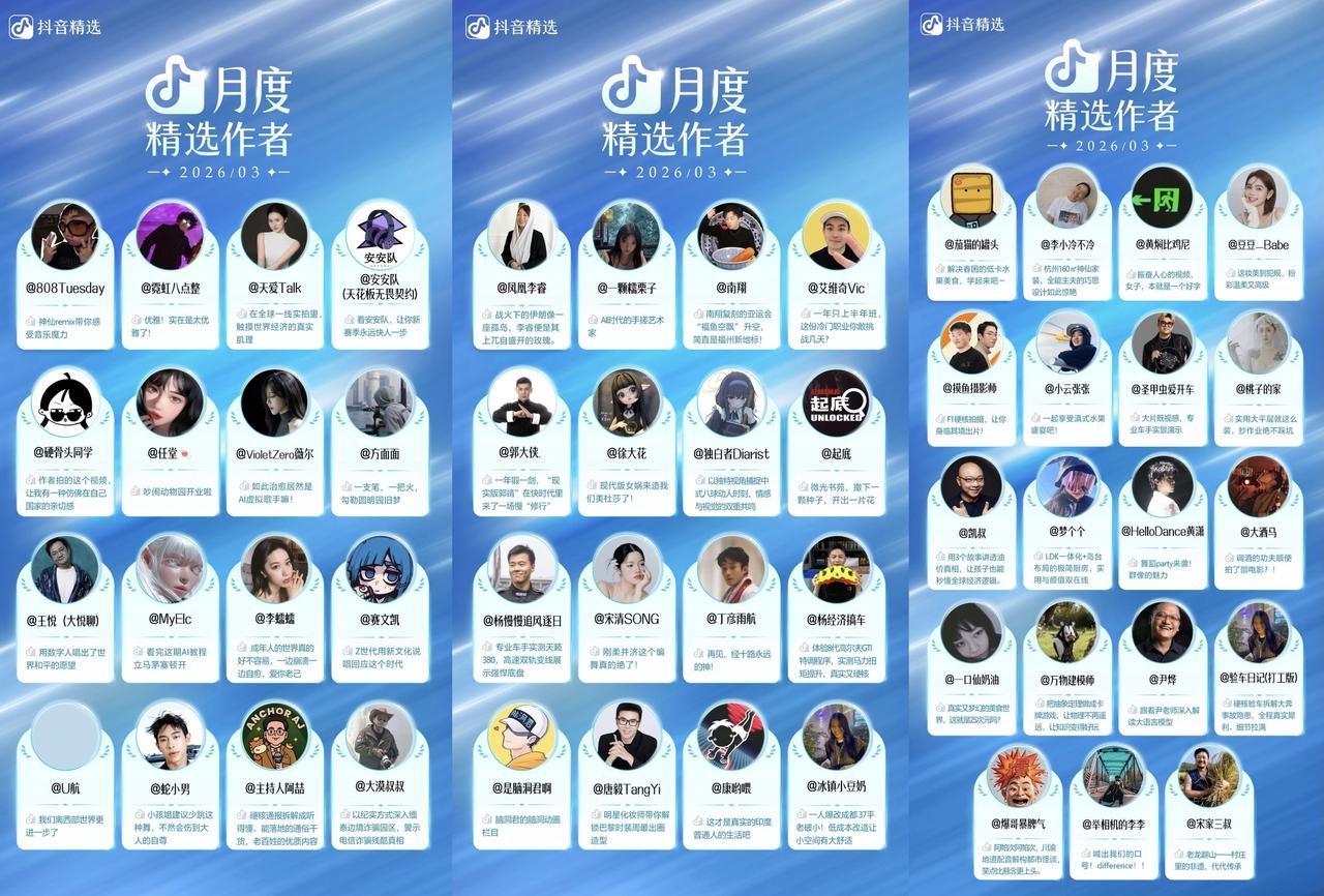有人把厨房唱成了2.2亿人次的回忆痛城,有人透过一个“她”让无数人看到自己,有人成为“说唱鲁迅”句句押韵暴击现实,有人用AI创作出了AI永远不会懂的飙泪短片... ... 没错,他们用各自的方式创作出了超百条爆款视频作品,而这99位创作者也“卷”进了3月的月度精选作者名单!